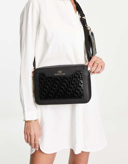 River Island - Sort, firkantet crossbody-taske med monogram-print