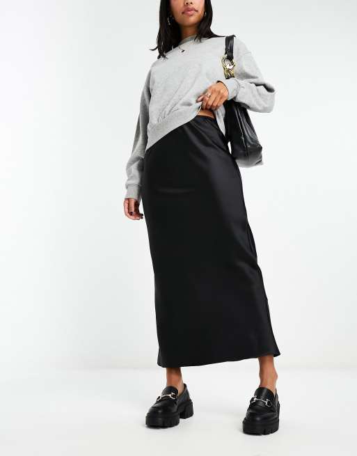 River Island - Sort midinederdel med skråsnit i satin