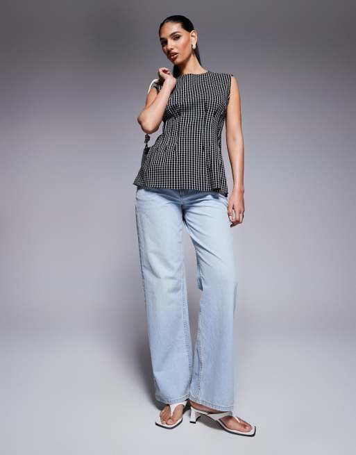 River Island - Sort top med pintucks og tern i poplin