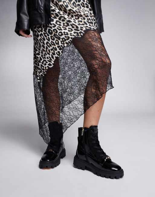 River Island - Sorte ankelstøvle i lak med snørebånd