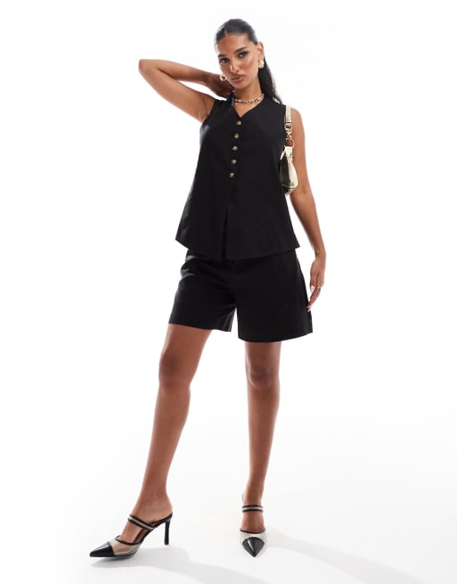 River Island - Sorte bermudashorts i hør - Del af sæt
