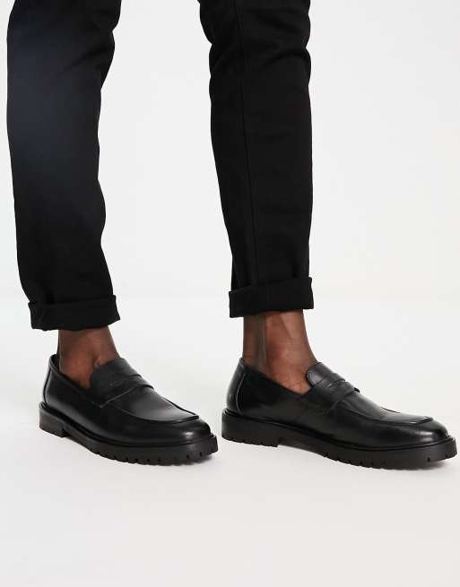 River Island - Sorte loafers i læder med chunky sål