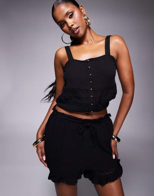 River Island - Sorte shorts i krølstof - Del af sæt