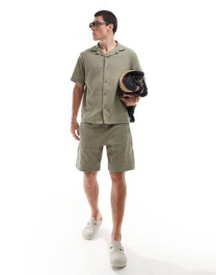 River Island - Sæt med skjorte og plisserede shorts i lys kakigrøn