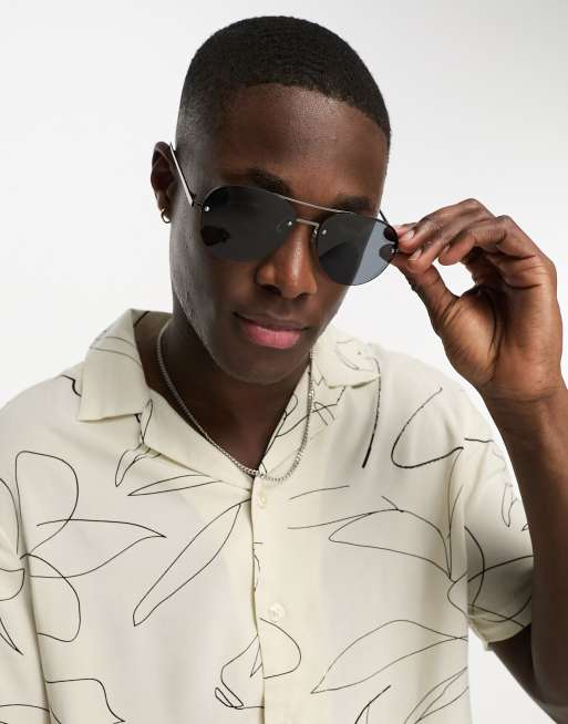 River Island - Uindfattede sorte aviator-solbriller med røgfarvede glas