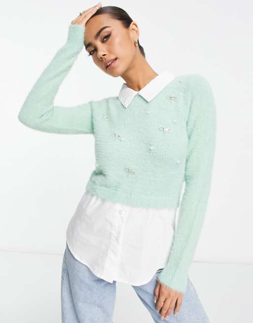 River Island - Vamset hybridtrøje med udsmykning i lysegrøn