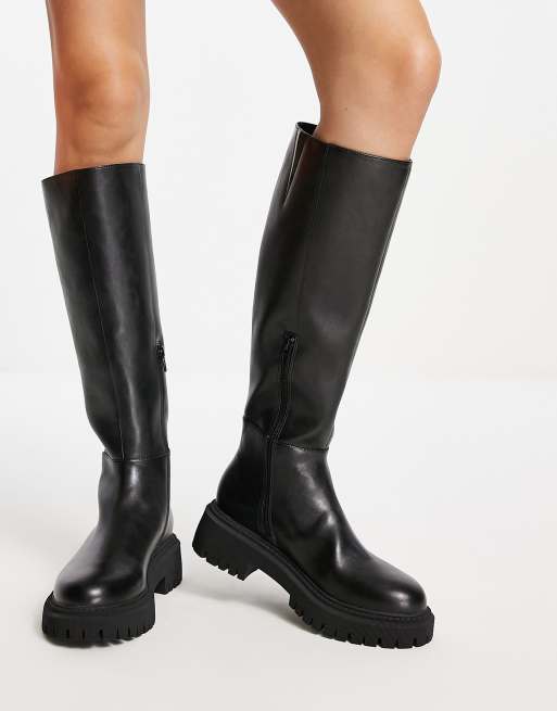 Rule London - Robin - Sorte flade knæstøvler i PU - Kun hos ASOS