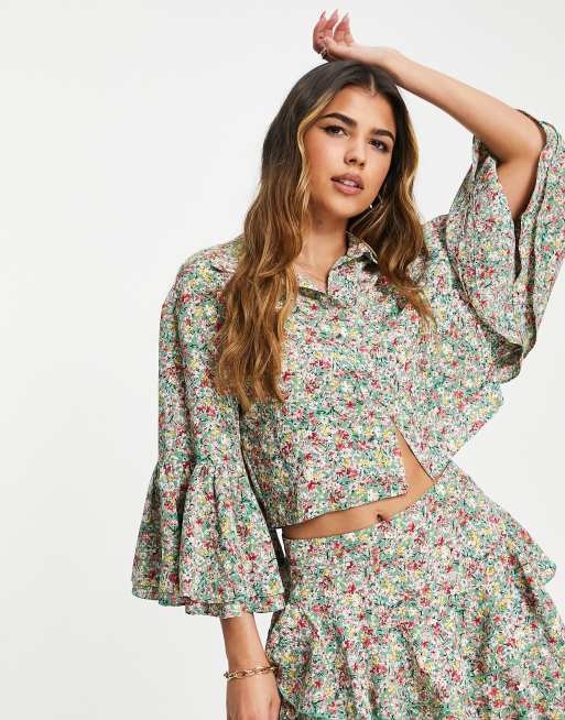Saint Genies - Skjorte med flæseærmer og blomsterprint