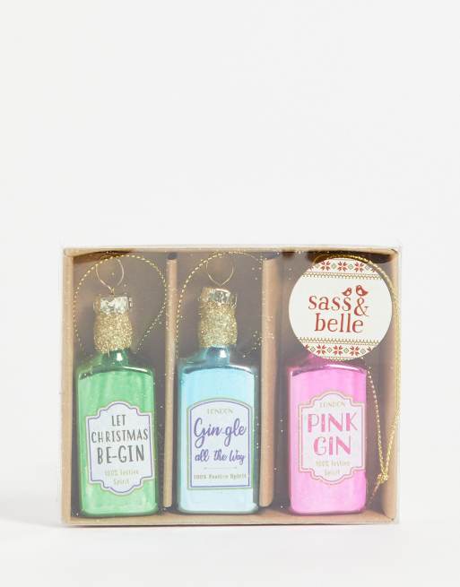 Sass and Belle - Sæt med julekugler formet som ginflasker