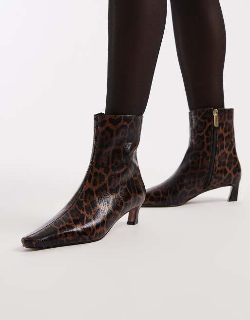 Schuh - Mellemhøje ankelstøvler med kitten-hæl og leopardprint