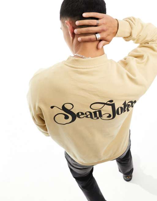 Sean John - Beige retro-sweatshirt med skriftprint foran og bagpå