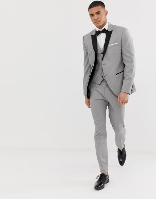 Gråt jakkesæt med revers i satin og smal pasform fra Selected Homme