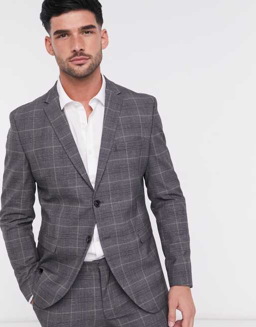 Selected - Homme - Jakke med slim fit i grå tern