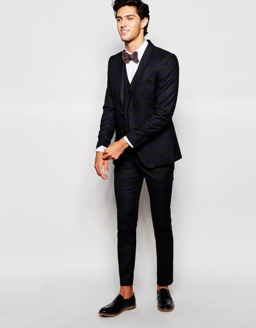 Selected Homme Prince of Wales Mørkeblå ternet habit i smal pasform