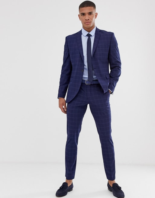 Mørkeblåt jakkesæt med vinduetern og smal pasform fra Selected Homme