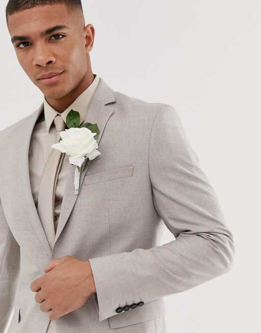Sandfarvet skinny habitjakke fra Selected Homme