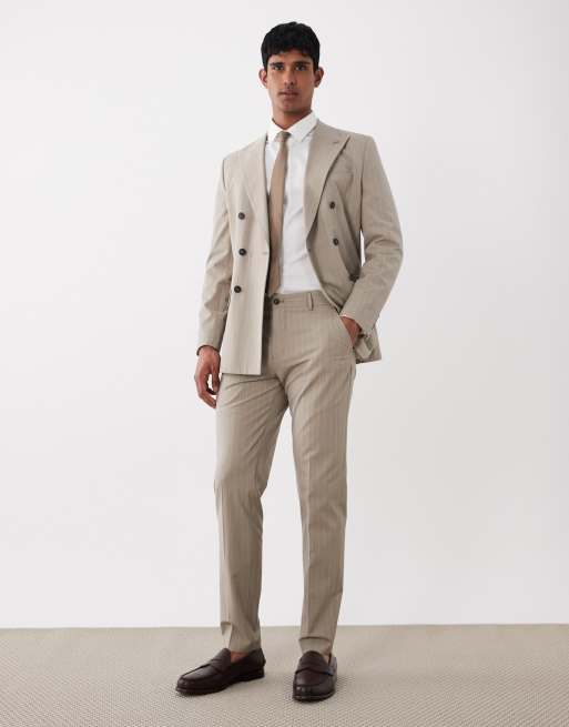 Selected - Beige nålestribede habitbukser i Slim Fit