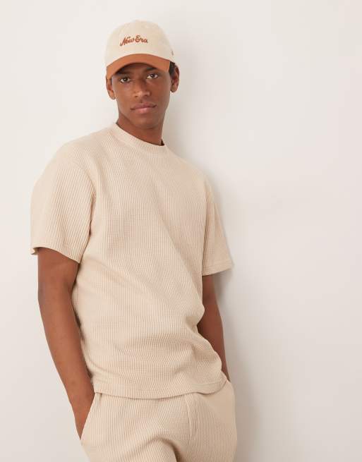 Selected - Cremehvid oversized T-shirt med vaffeltekstur - Del af sæt
