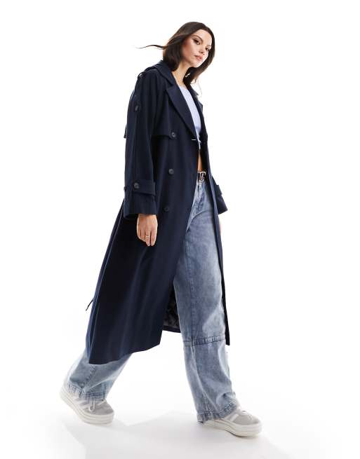Selected Femme - Dobbeltradet og marineblå trenchcoat i uld