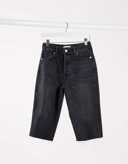 Selected Femme - Sorte longline-denimshorts med trevlet kant