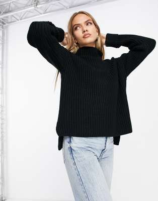 Selected Femme - Striktrøje med tætsiddende ærmekanter med opsmøg i sort