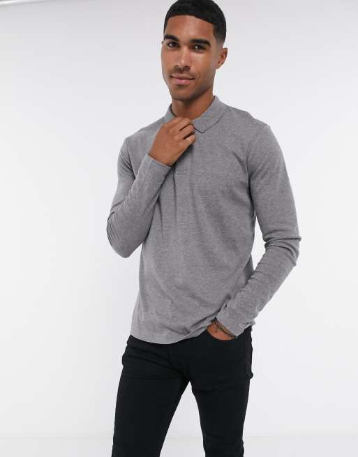 Selected Homme - Grå polo i jersey med lange ærmer