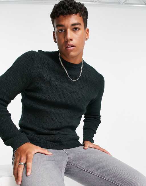 Selected Homme - Grøn tekstureret trøje med rund hals