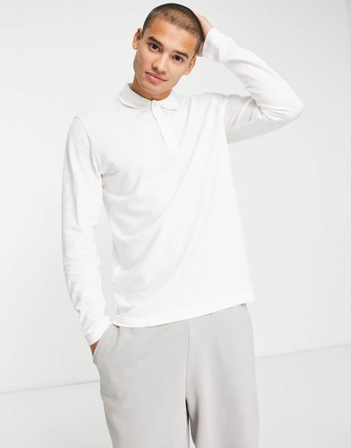 Selected Homme - Langærmet hvid poloskjorte