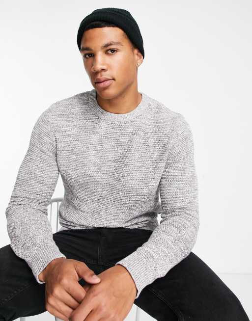 Selected Homme - Lysegrå striktrøje med tekstur og rund hals