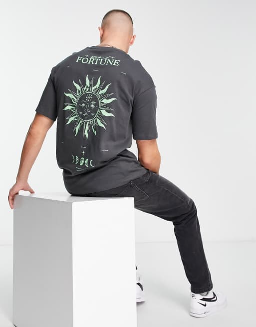 Selected Homme - Oversized t-shirt med fortune-print bagpå i grå