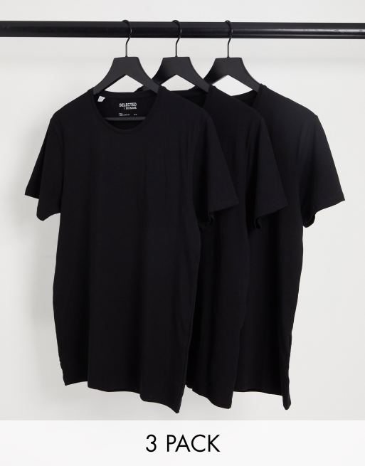 Selected Homme - Pakke med 3 sorte T-shirts med rund hals