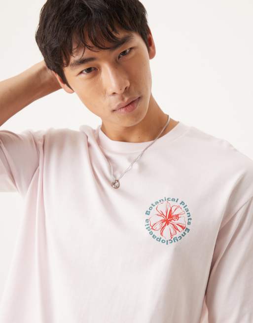 Selected - Lyserød oversized T-shirt med botanisk print på ryggen