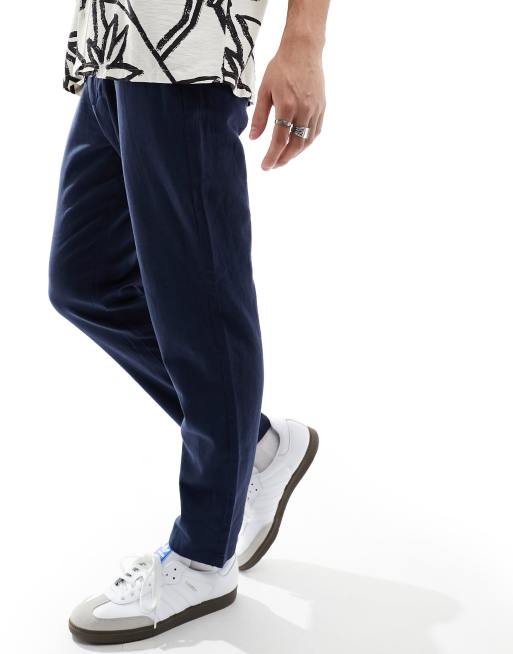 Selected - Marineblå tapered smalle bukser i hørblanding