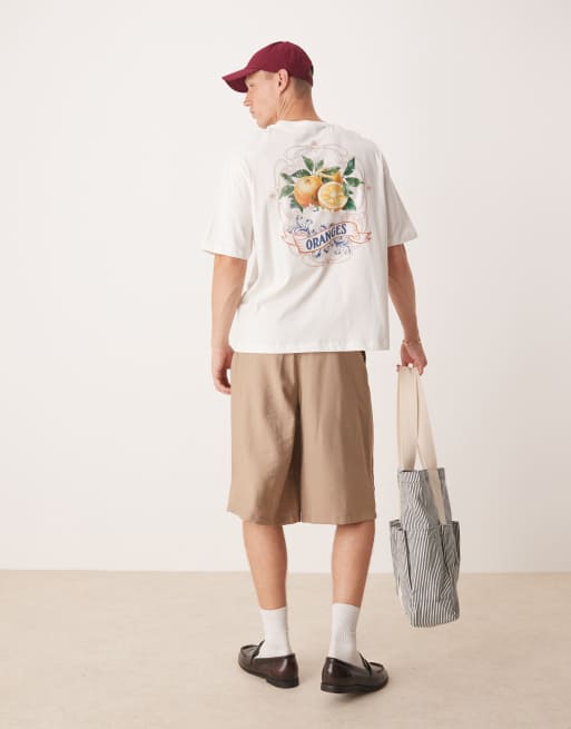 Selected - Råhvid oversized T-shirt med appelsinprint på ryggen