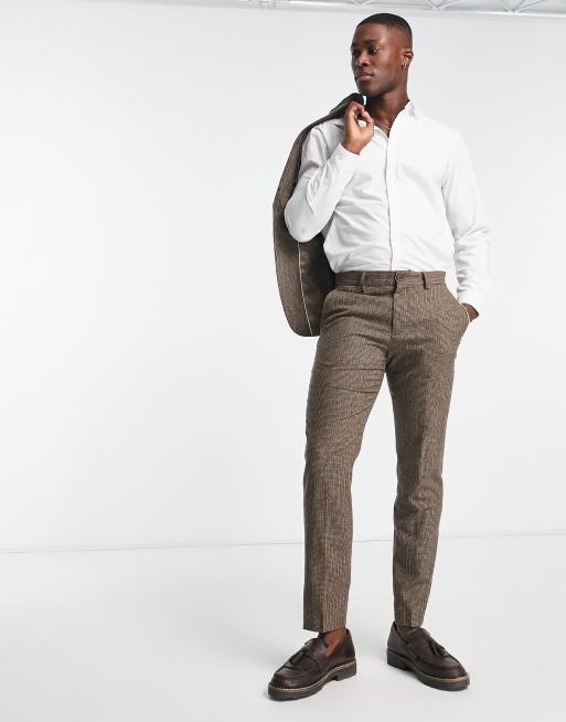 Selected - Slim-habitbukser i uldblanding med brunt tern