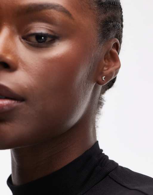 Seol + Gold - Ørestikkere med halvmånedesign og kubisk zirkonia-sten i sterlingsølv
