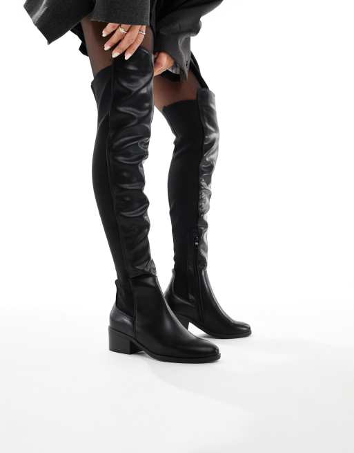 SEQWL Wide Fit - Bellini - Sorte overknee-støvler med ridestøvledesign