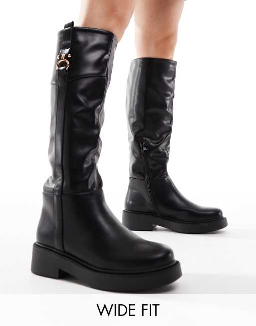 SEQWL - Wide Fit - Flade og knæhøje ridestøvler i sort