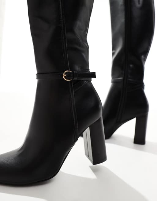 SEQWL - Knæhøje støvler med blokhæl i sort