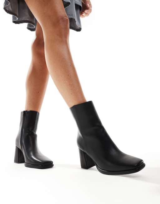 SEQWL - Sorte ankelstøvler med firkantet tå og blokhæl