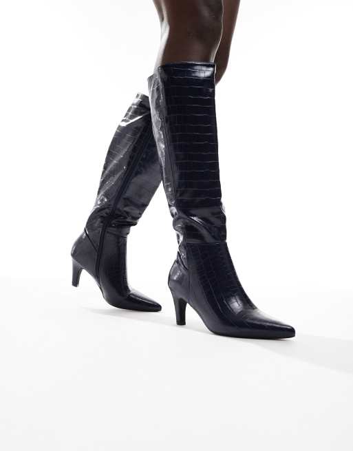 SEQWL - Starburst - Marineblå knæstøvler med krokodillemønster