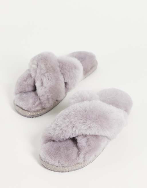 Sheepskin by Totes - Grå hjemmesko med krydsende remme