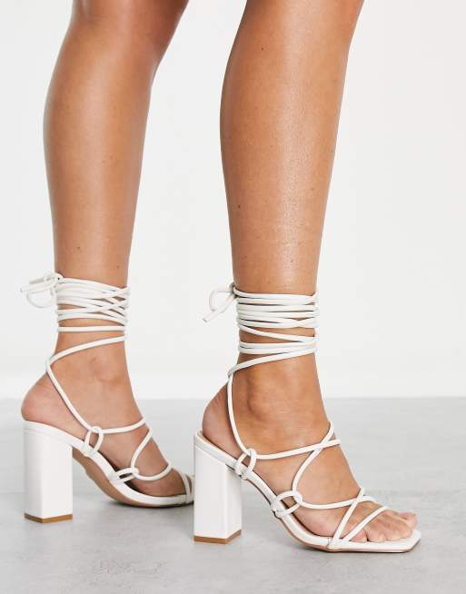 SIMMI London - Hvide sandaler med blokhæl og bindebånd om anklen