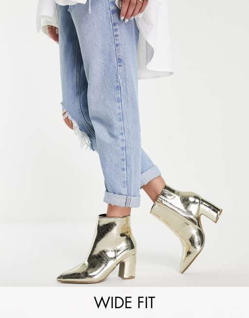 Simply Be - Extra Wide Fit Leilani - Guldfarvede høje ankelstøvler