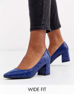 Simply Be - Wide fit - pumps med blokhæl i blåt slangeskindspræg