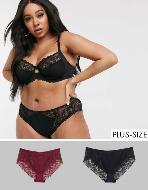 Simply Be — Eva — Sort og vinrøde trusser med højtskårede ben 2-pak