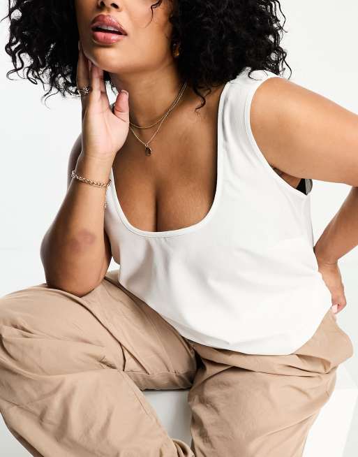 Simply Be - Hvid cami-top med dyb, rund hals