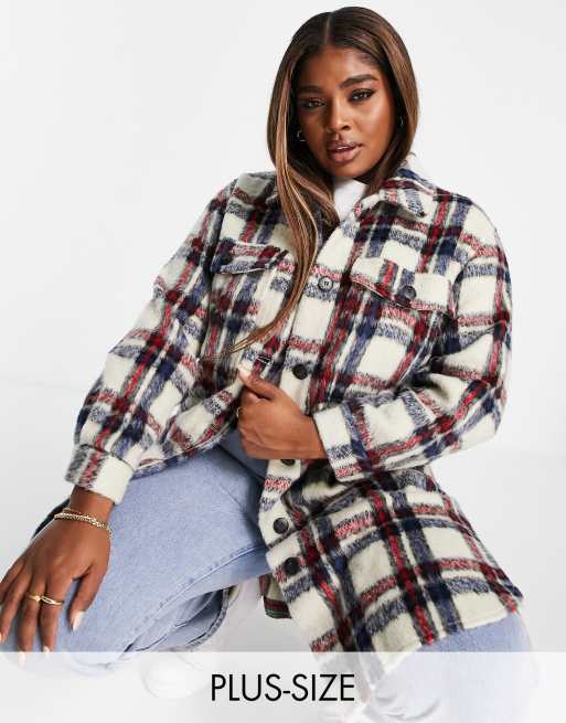 Simply Be - Longline skjortejakke i blå og røde tern