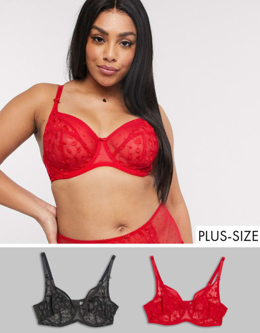Simply Be - Lucy - 2-pak lingerisæt i rødt og koksgråt