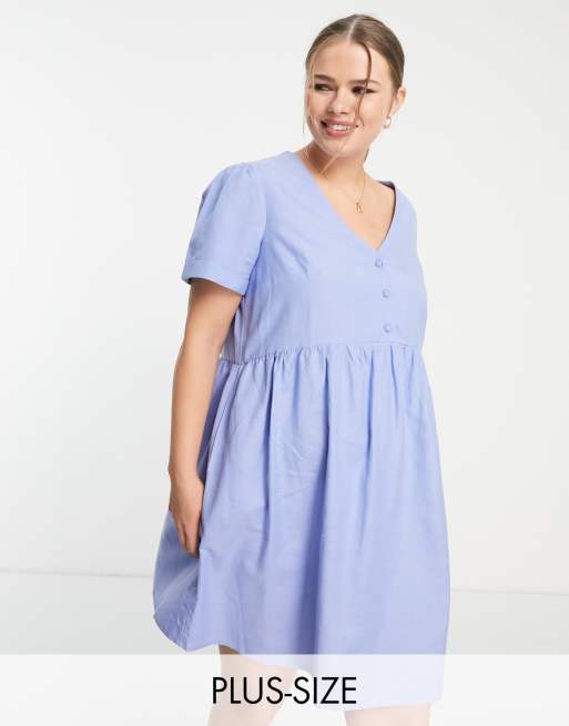 Simply Be - Lyseblå kortærmet smock-kjole i hør